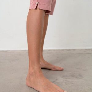 Γυναικεία πυτζάμα με κάπρι παντελόνι, πατιλέτα και κοντό μανίκι από δαντέλα. Ένα σχέδιο με ρομαντικό χαρακτήρα
